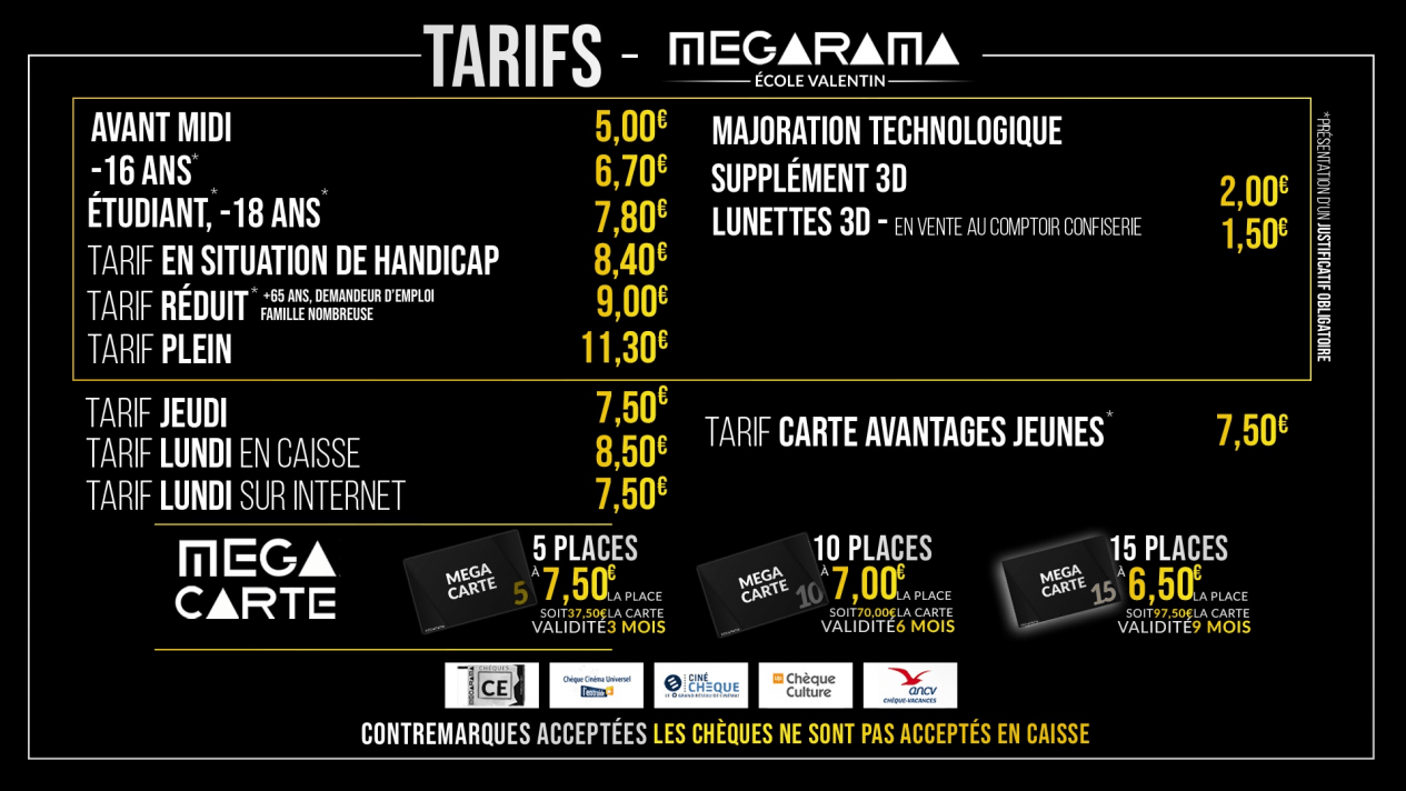 Complément d’information disponible auprès du personnel de votre cinéma Mégarama.